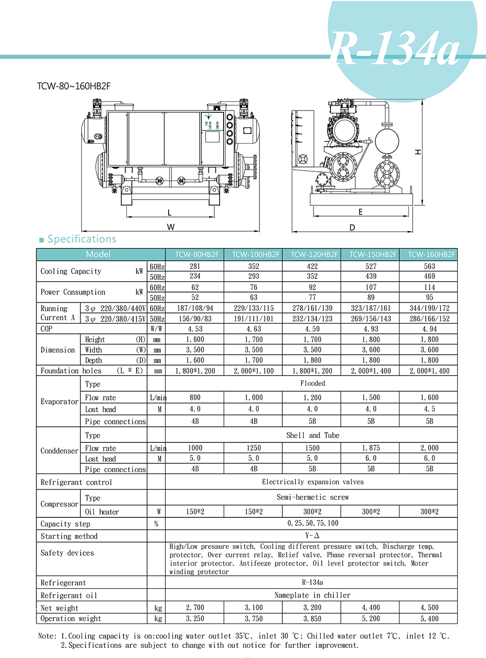 Máy Lạnh Chillers R-314a TCW 80 ~ 180HB2F